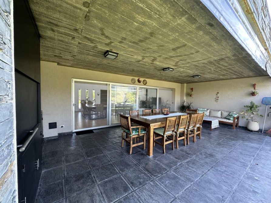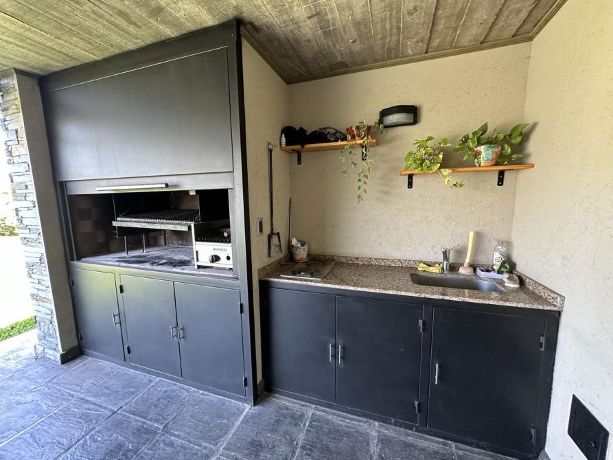 - Galeria semicubierta con parrilla completa, anafe a gas, mesada con bacha y cocina electrica. Cerramientos de Lona Cristal.