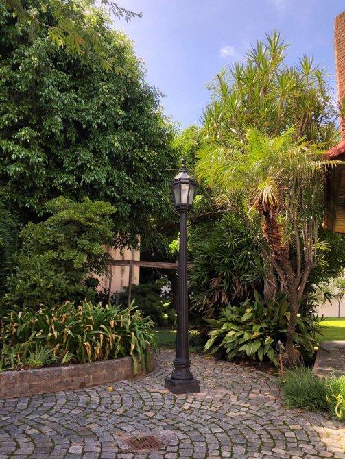 La propiedad cuenta con todas sus aberturas en madera de excelentísima calidad y sus vidrios biselados e innumerables detalles de calidad y buen gusto. Portón de acceso de rejas automatizado al igual que el portón de madera de acceso a las dos cocheras cubiertas.