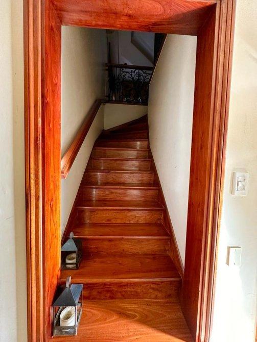 Tenemos la posibilidad por medio de una escalera de madera de acceder a un primer piso el cual podría cumplir la función de playroom con balcón hacia el frente de la propiedad y una guardilla muy amplia.