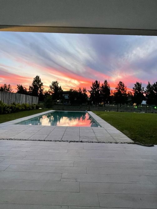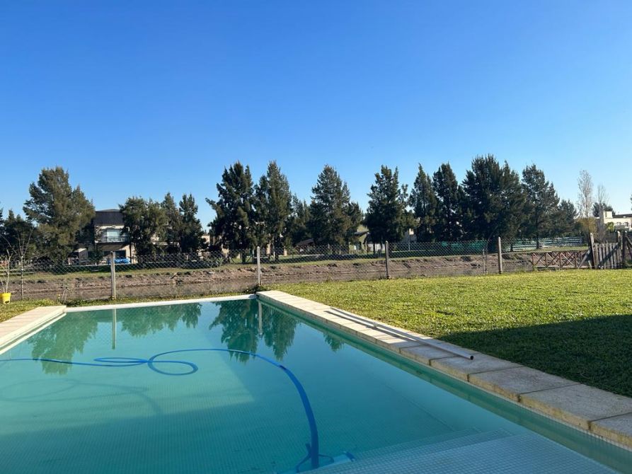 Amplia Galería semi-cubierta con Parrilla y piscina con borde infinito de 4*10 recubierta en venecitas