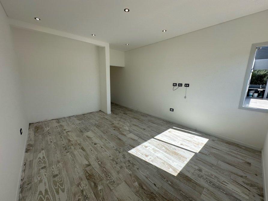 Al ingresar a la propiedad se encuentra un Living-Comedor de generosas dimensiones, el cual cuenta con la cocina integrada. La misma cuenta con muebles bajo mesada colocados, horno orbis a gas con grill y anafe a gas con campana; adempas cuenta con espacio para Lavavajilla.