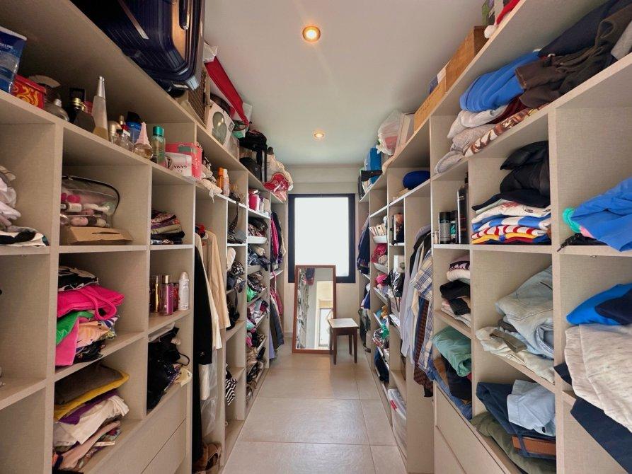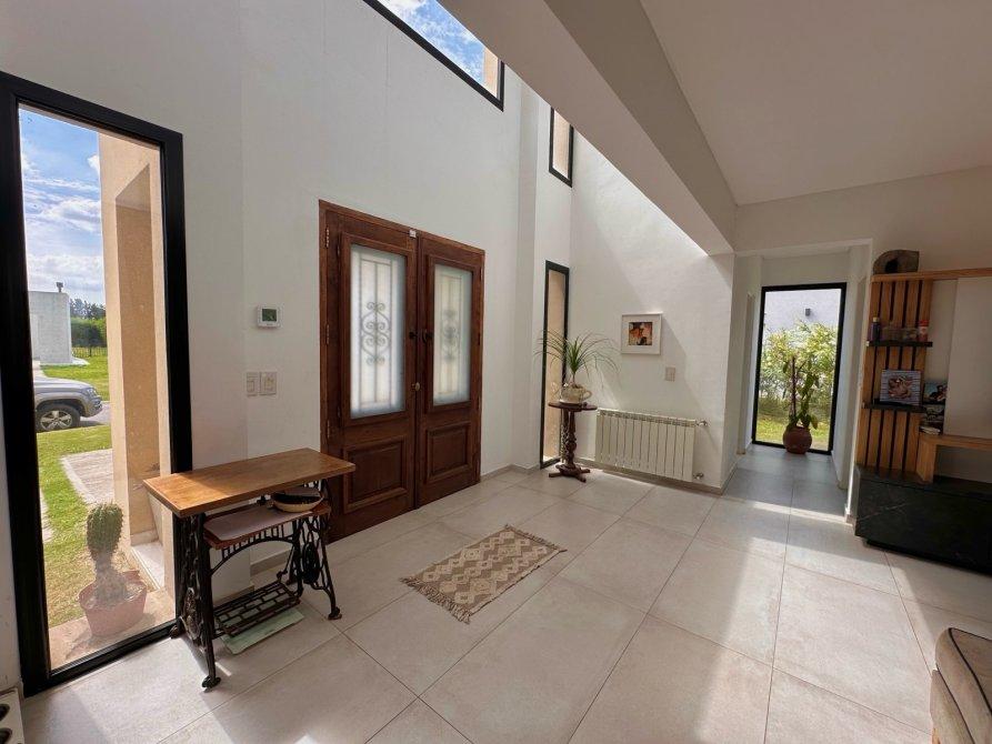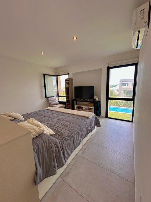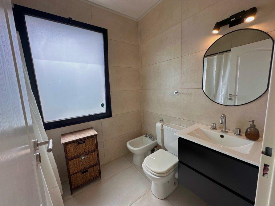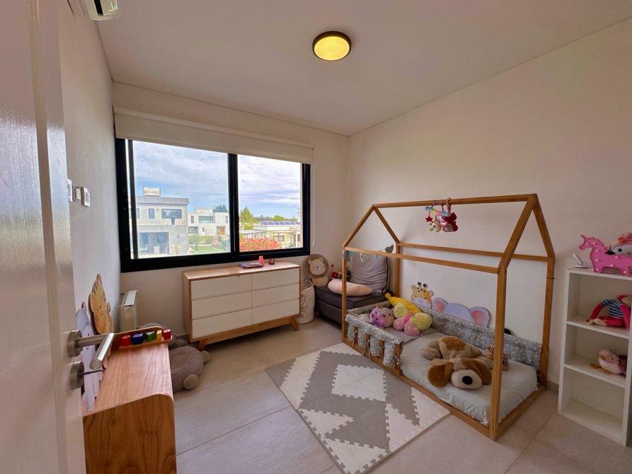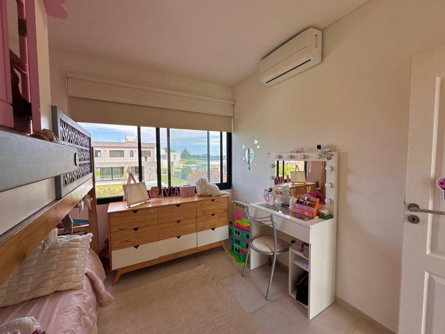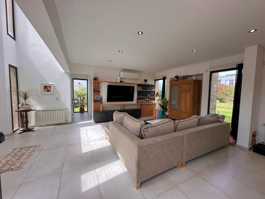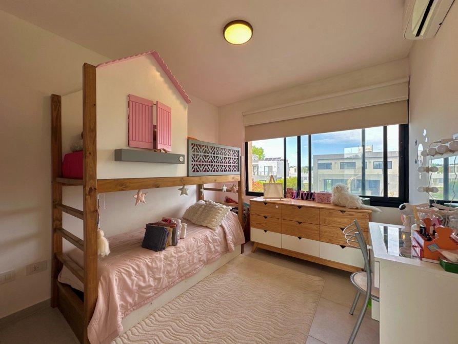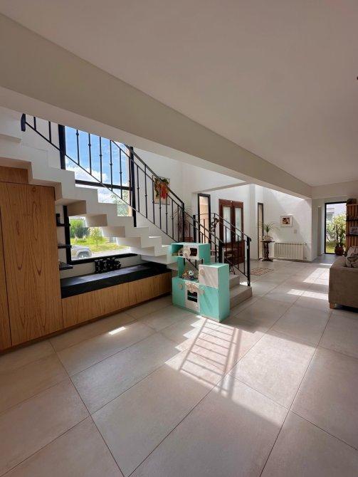 En la planta alta, la casa dispone de dos dormitorios con placard y vistas al parque, un baño completo, y una suite principal de generosas dimensiones con un elegante vestidor y baño .