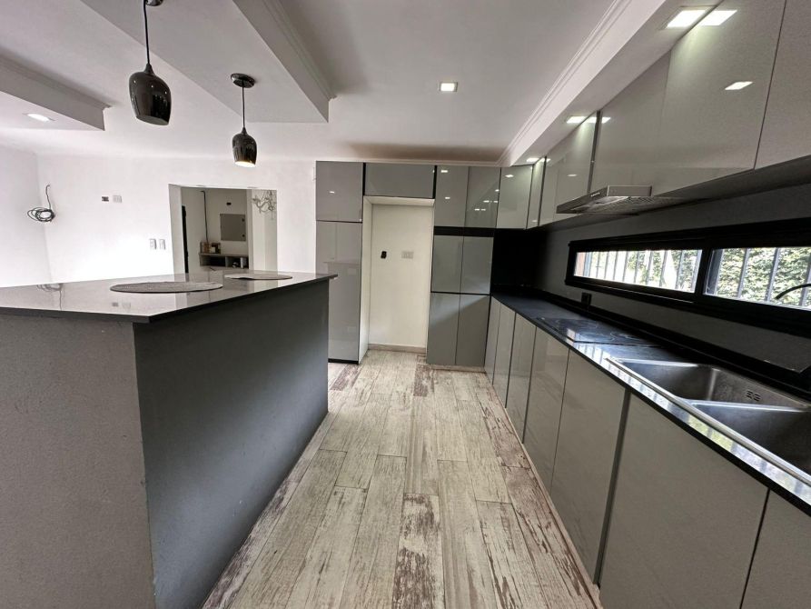 En PB se encuentra un cómodo Living hacia la derecha del mismo laocina comedor la cual cuenta con muebles bajo mesada y alacena colocados, además de una moderna isla. También se encuentra un toilette de recepción.
