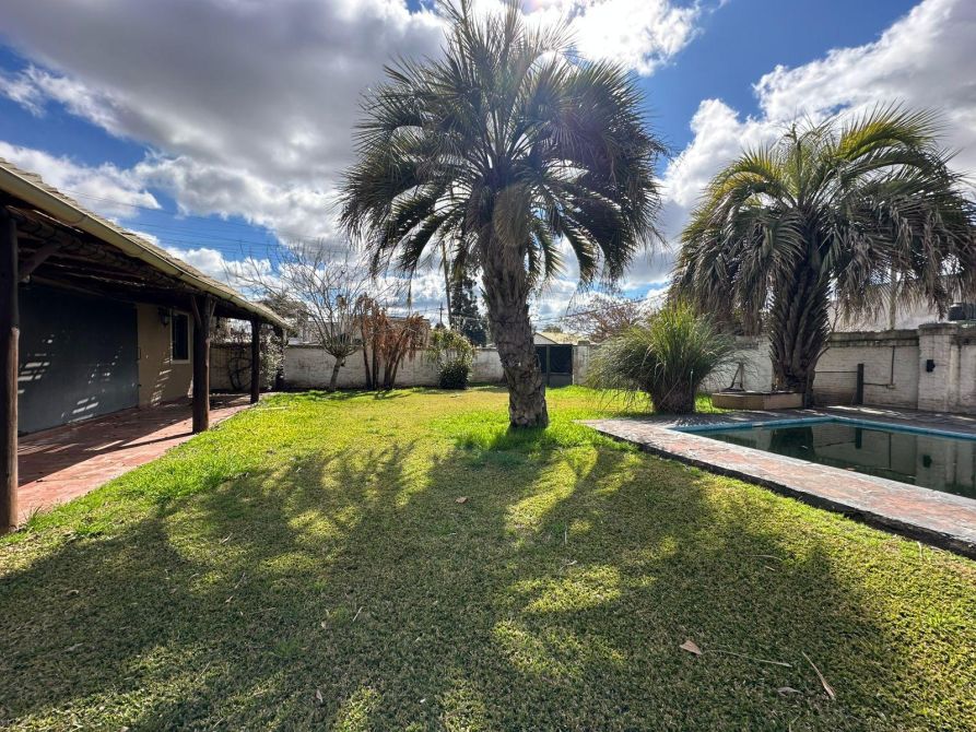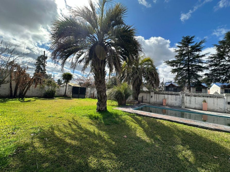 En el exterior se encuentra un amplio quincho con parrilla , horno de fundición , amoblamiento de cocina completo , barra y baño en el mismo.