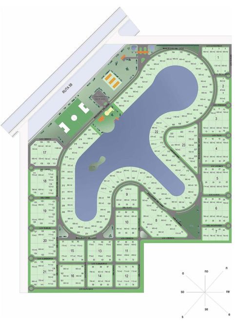 El Barrio tiene 38has. Con laguna propia con muelle de acceso para la práctica de deportes náuticos a vela, natación y pesca deportiva.