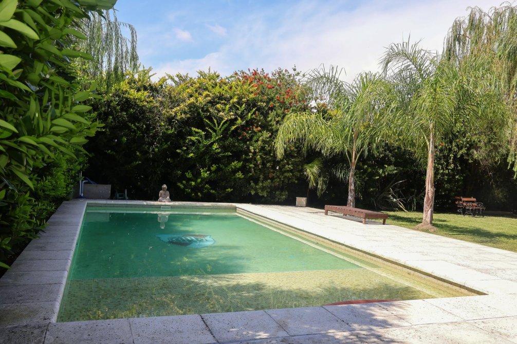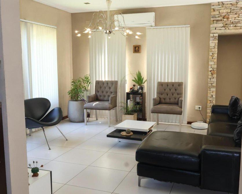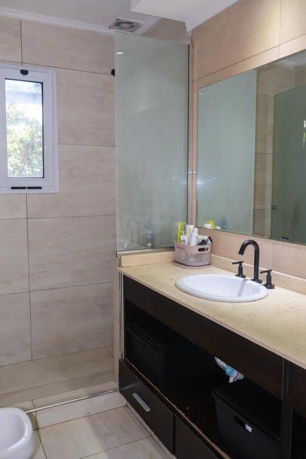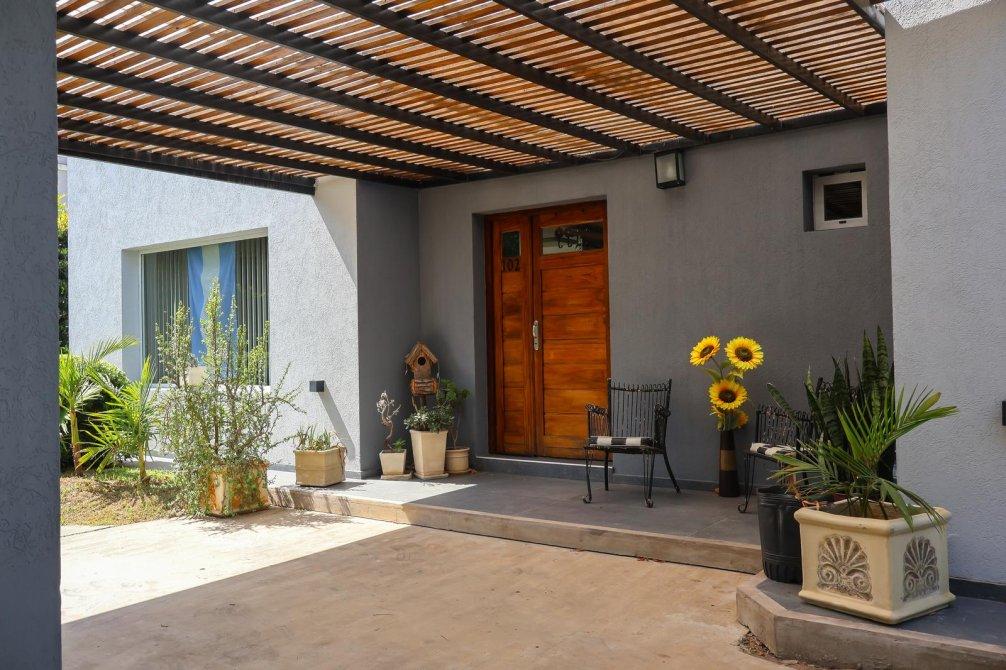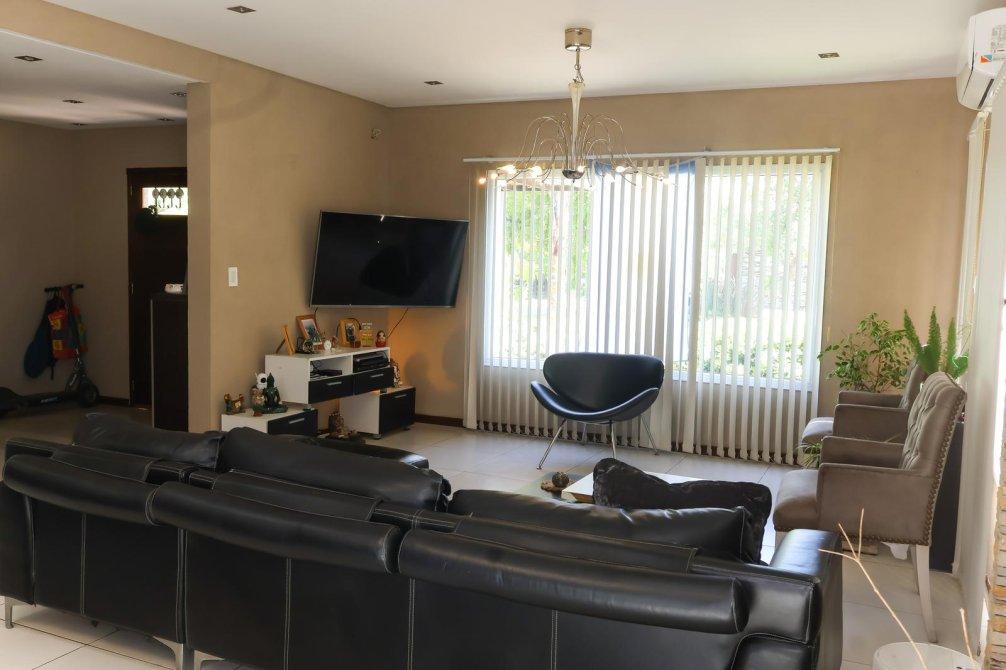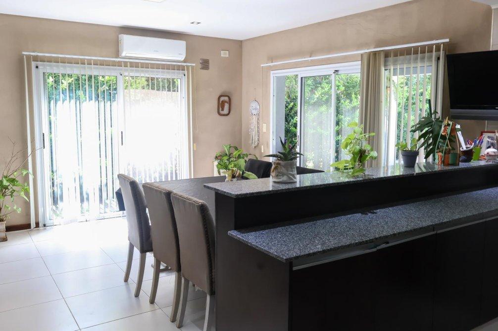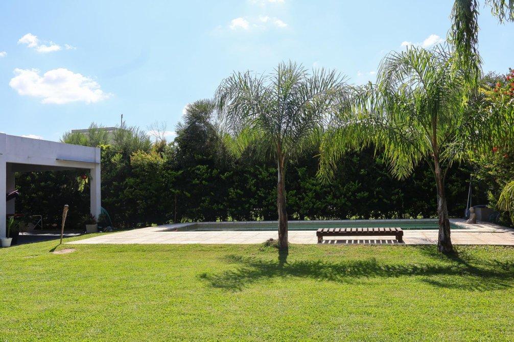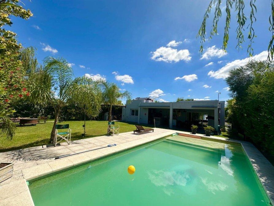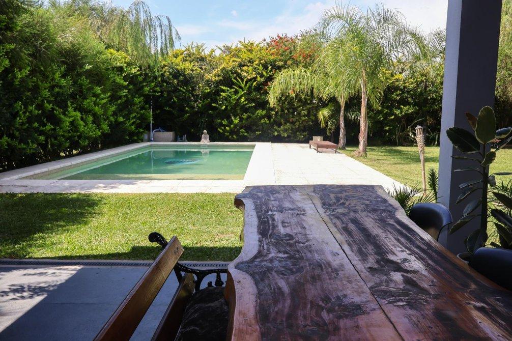 En el exterior, la casa sorprende con un espectacular quincho equipado con parrilla, isla y un baño exclusivo para esta área. La piscina, revestida en venecitas, se integra armoniosamente con el hermoso parque forestado, que cuenta con sistema de riego automático. Además, en el parque se encuentra un horno de barro, ideal para disfrutar de asados y comidas caseras al aire libre.