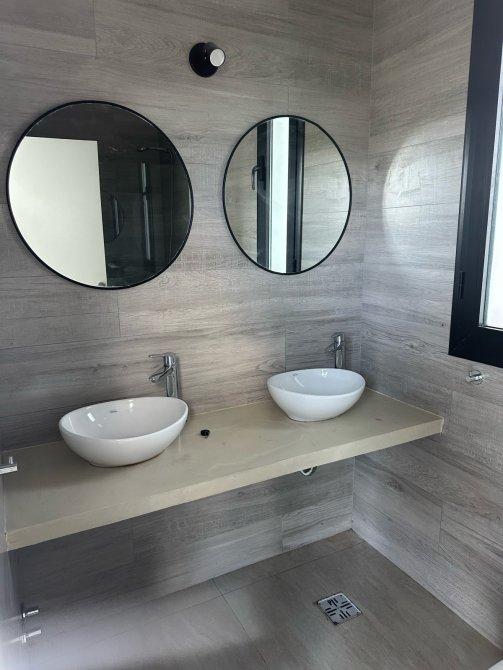 Master suite con baño con doble bacha, placard con puerta espejada y balcón.