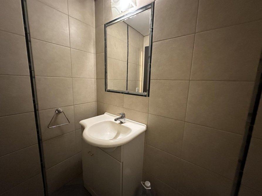 Toilette y espacio kitchenette .