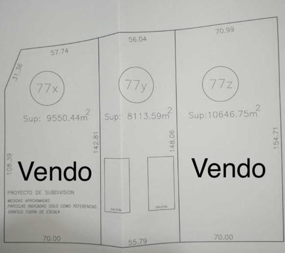 - LOTE 1 (Fracción 77Z) : con una superficie aproximada de 10.646,75 m², USD 80.000-